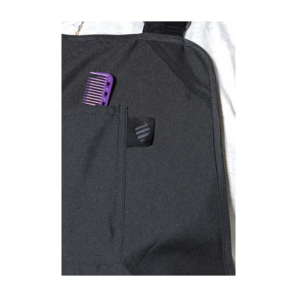 The Barber Apron features water-resistant and bleach-proof material, protecting clothing from spills and hair splinters. Multiple pockets allow for multi-tool storage, and adjustable padded neck system provides extra comfort for long hours in the shop. Available in a standard fit.