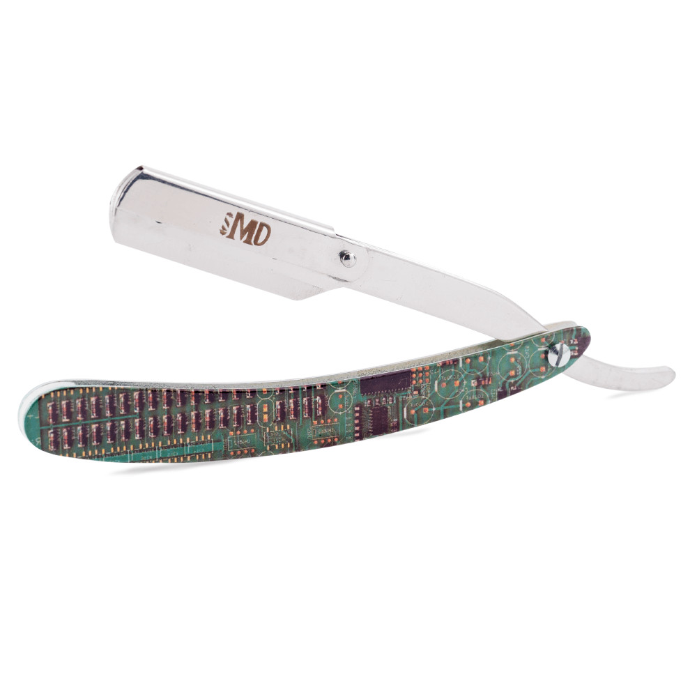 Tags: butterfly clasp, circuit board, circuit board razor, circuit razor, flag razor, graphic razor, md barber, md razor, men's razor, straight razor, swing lock razor, swinglock