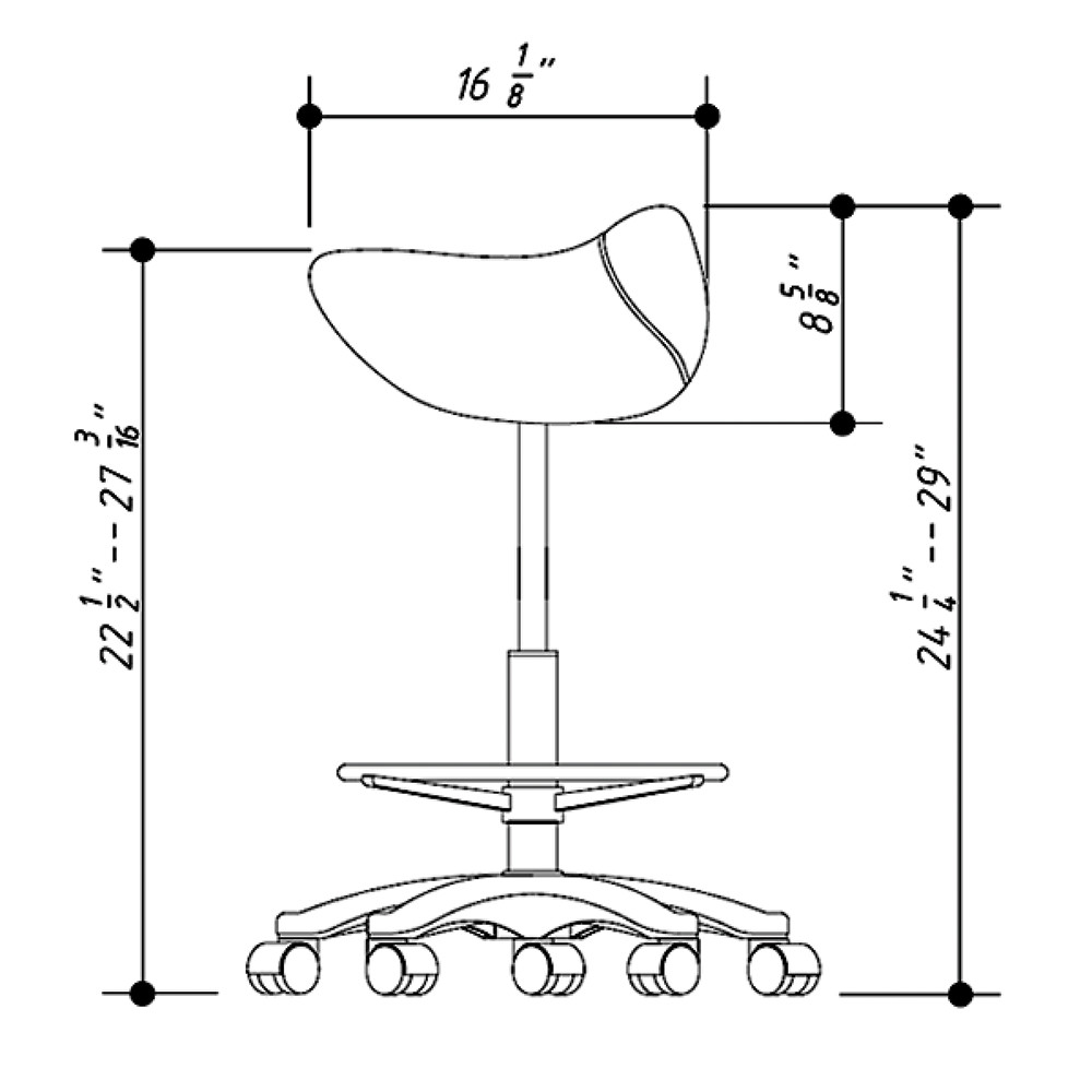 The “HERMES” saddle stool adds a little flare to the traditional stool. Its unique ergonomically designed seat allows for better posture and less fatigue. This versatile stool has an adjustable footrest ring making it easy to use by hairdressers or clientele. The stool features a large diameter star base for stability not allowing for stool to tip over easily and a handle for easy maneuvering.