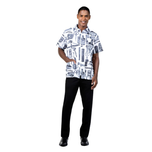 Italian Style Barber Jacket. Two Standard Pockets with one breast pocket. Cotton/polyester blend. A vintage look with up-to-date comfort and detail.