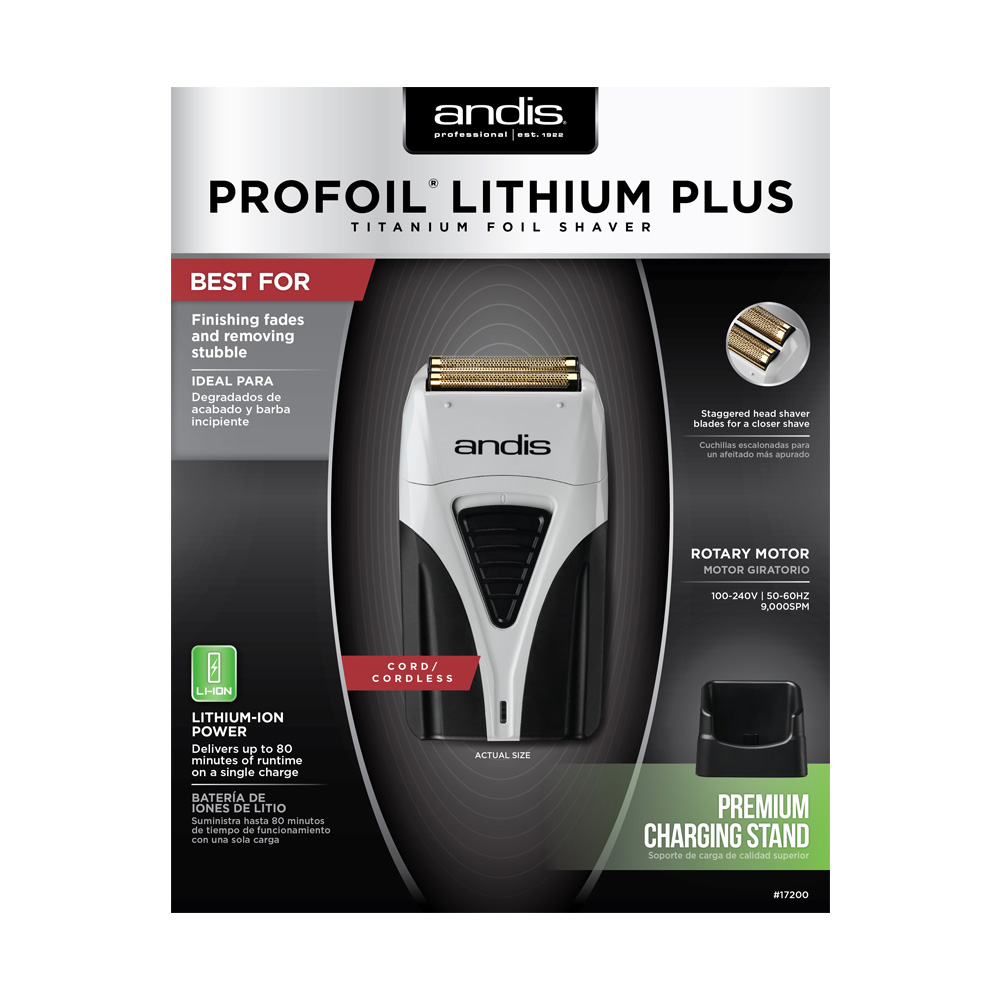 Best for Finishing Fades and removing stubble. Delivers up to 80 minutes of run time on a single charge. Includes premium stand-up charging stand. Lightweight – less than 5 ounces. Powerful and quiet rotary motor. Gold titanium hypo-allergenic foil for irritation-free shaving.