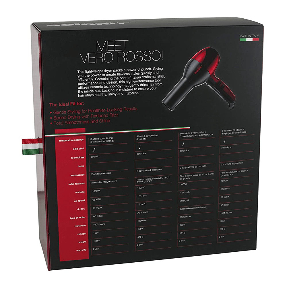 - Ceramic technology dries hair from the inside out and locks in moisture